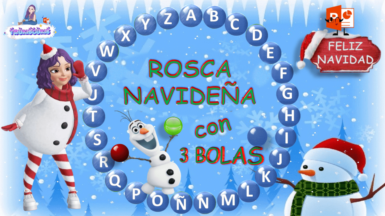 ¡NOVEDAD! ROSCA NAVIDEÑA CON 3 BOLAS. Completa este divertido juego con preguntas relacionas con la Navidad. La Rosca con 3 bolas es más dinámica y fácil de responder, porque tiene dos opciones de Respuesta. Debes pinchar en la palabra correcta y saldrá la bola verde y si fallas saldrá la bola roja. ¡ Pon a prueba tus conocimientos !