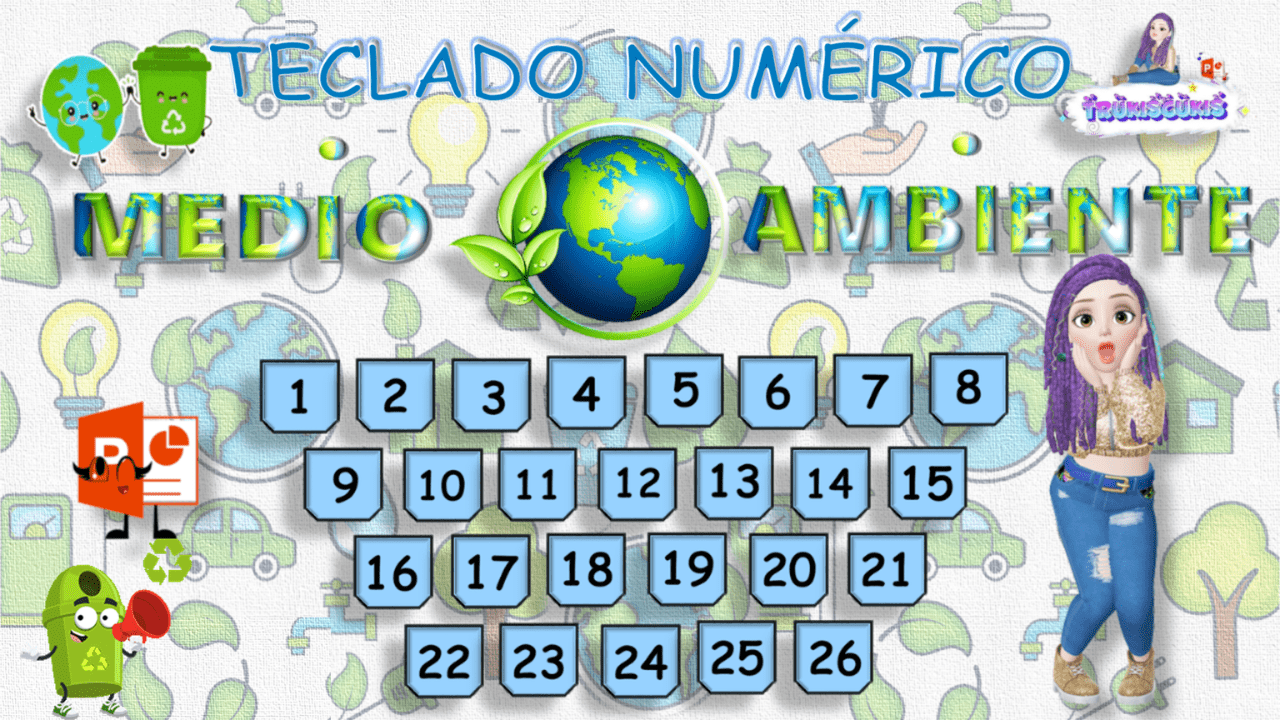TECLADO NUMÉRICO con preguntás sobre el Medio ambiente y el Reciclaje, con dos opciones de Respuesta.