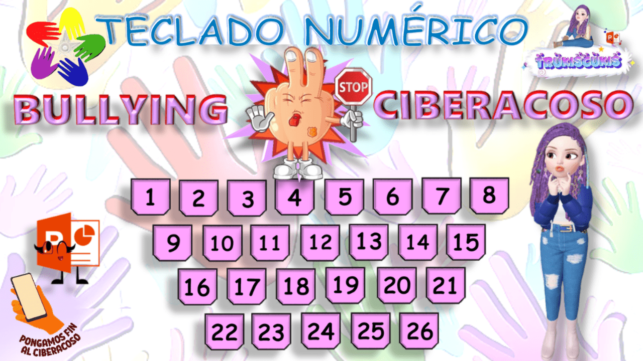 TECLADO NUMÉRICO con preguntás sobre el Bullying y el Ciberacoso con dos opciones de Respuesta.