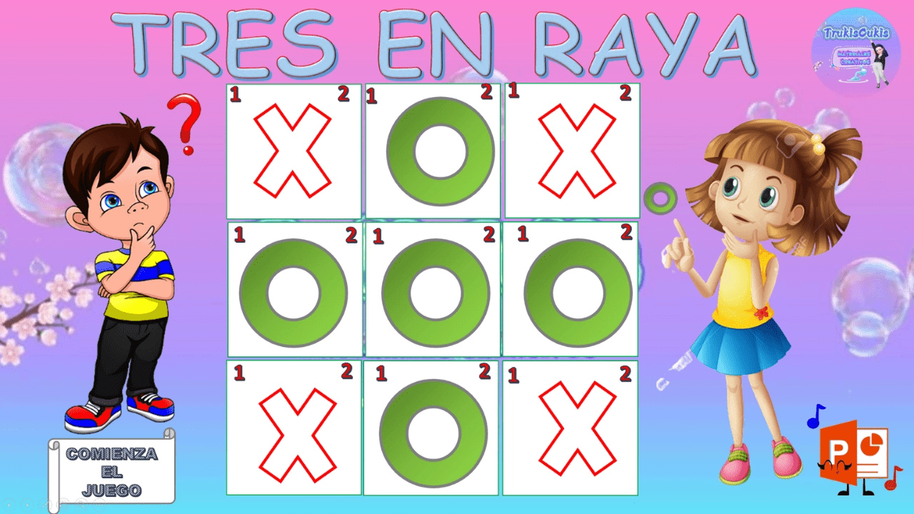 💻El Juego contiene 3 plantillas diferentes. Elige el turno de salida y a jugar el Tres en Raya.