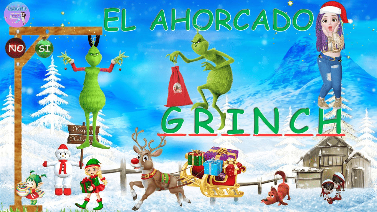 Jugamos a El ahorcado con el Grinch. Un peludo y gruñon duende que quiere robarle los regalos a Santa Claus.