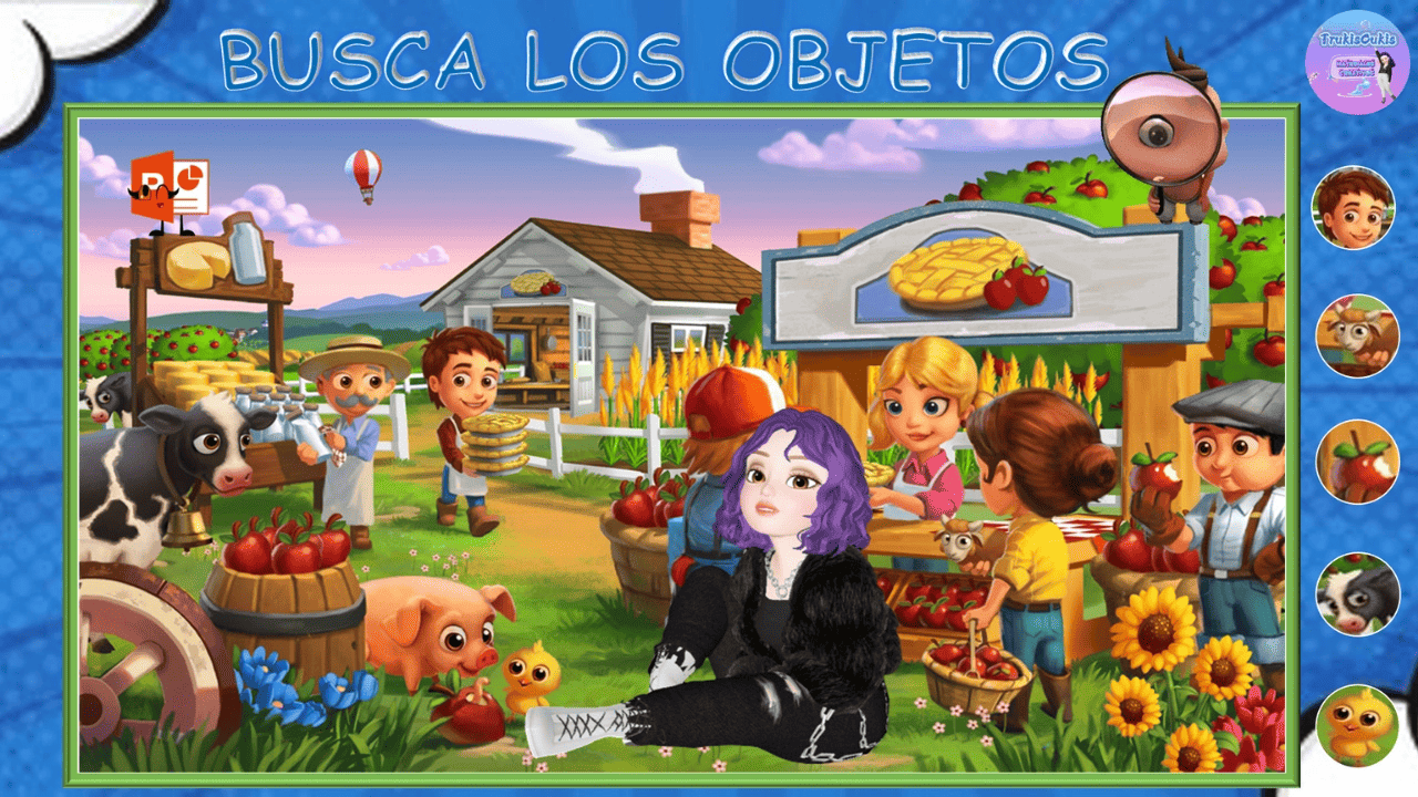 BUSCA LOS OBJETOS en la escena. El juego consiste en memorizar los objetos que ves en los círculos y buscarlos en la escena.