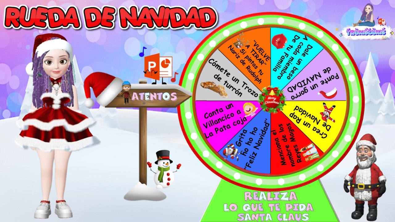 La Rueda de Navidad, con una divertida ruleta interactiva. Juego de entretenimiento para disfrutar en familia o con amigos con temática de Navidad.